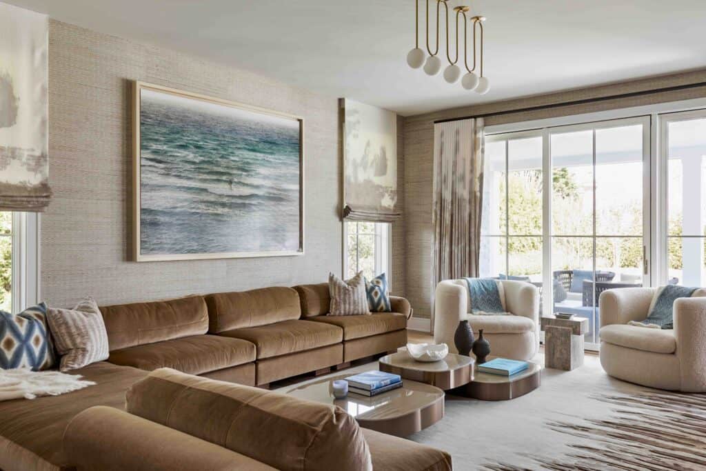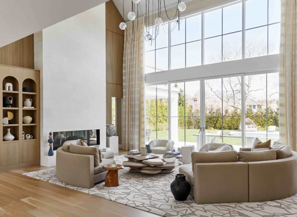 Modern organic takes it a step further by blending natural elements with clean, contemporary lines. “Our goal is to make the space feel current and sophisticated but with warmth and character,” she explained. The living room embodies this philosophy most dramatically.