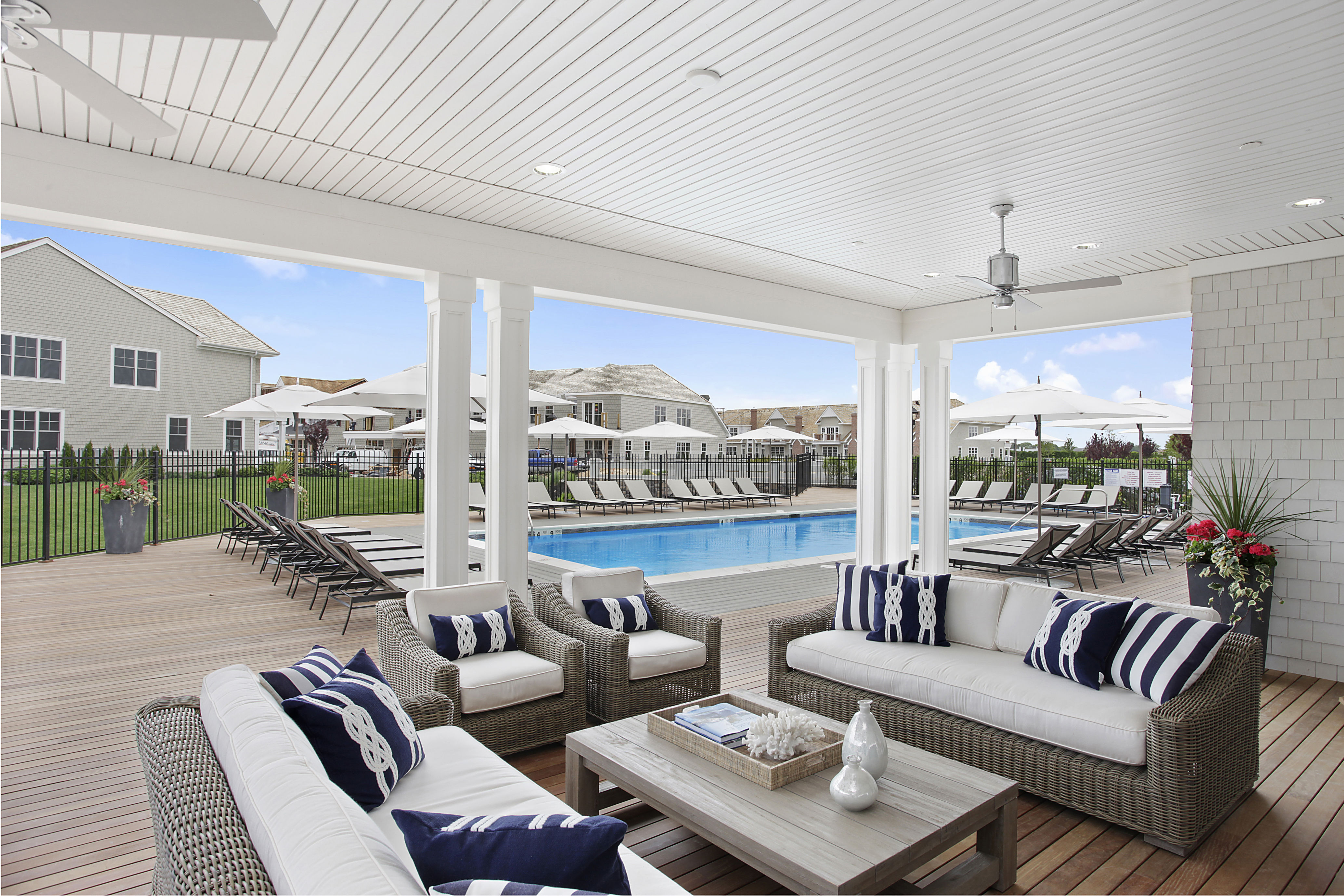 Still under construction, Bishops Pond, a 69-unit condominium community in Southampton that went on the market last spring, sold out its first phase in ten weeks, and its second phase over the summer. Only the three model units are still available, decorated by Bridgehampton design firm Mabley Handler with furnishings from Wainscott’s Serena & Lily.