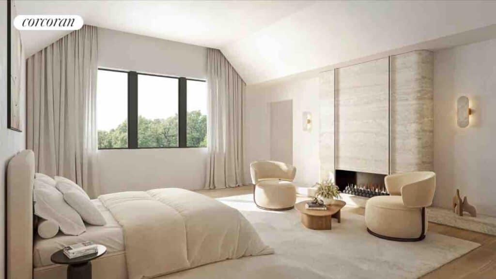 The grounds have been thoughtfully programmed for both leisure and event-scale entertaining. A 20′ x 50′ heated gunite pool and integrated spa form the heart of the outdoor experience, surrounded by white Turkish marble patios and curated garden moments. A fully equipped outdoor kitchen, fire pit, and multiple covered porches offer flexibility in dining and relaxation. The pool house includes a kitchenette, powder room, outdoor shower, and pergola lounge, creating a complete destination experience within the property. Engineered for comfort and control, the home features a 12-zone forced air system, radiant heat in select areas, individual bedroom thermostats, municipal water, and a full house filtration system. Audio is seamlessly integrated with spackle-in and flush-mounted speakers throughout. Windows and doors are by Marvin Modern, with Miabec exterior shingles and Waldun Canadian roof shingles completing the home’s quiet exterior presence.