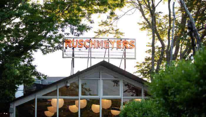 “We like to play to the vibe that it’s always one big dinner party at Ruschmeyers for adults who grew up loving to go to summer camp,” says Maître D’ Melody Thomas. “Bring your crew, make new friends, and enjoy cocktails with local fare at our communal tables. You’re under these magical fairy lights adjacent to a bonfire while listening to curated tunes you can sing along to with everyone else around you. Plus, there’s cornhole, oversized Jenga, and ping-pong tables you can bond with others over. It doesn’t get more camp-y than that.”