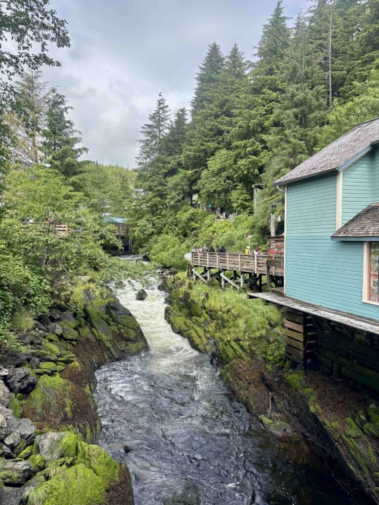 Ketchikan, Alaska was our first port, after one sea day. We arrived on a rainy day, which was no surprise; the island gets about 150 inches of rain a year. I had signed us—my two sons and me—up for a trip through the Tongass National Forest, the largest national forest in the United States and the largest temperate rainforest in the world.